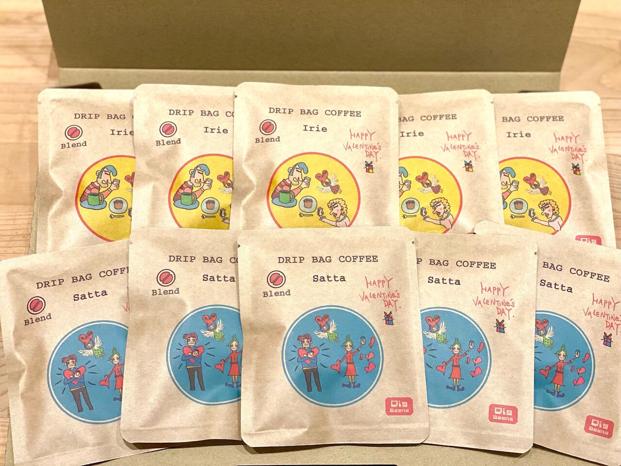・バレンタインパッケージでブレンドIrie5個、Satta5個の2種類となっております。